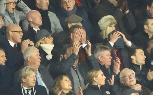 Cổ vũ M.U cùng Sir Alex, Jim Ratcliffe ôm mặt tiếc nuối